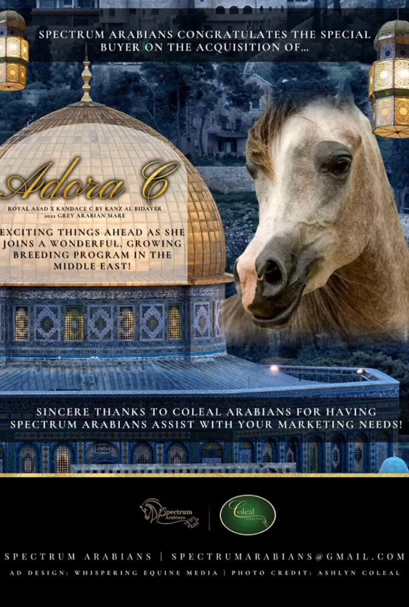 Isabelle C (Marsal Al Shaqab x Scarlet Ribbons C) • Kuwait National Champion Two Year Old Filly and Kuwait National Silver Champion Jr Filly, owned by Farraj AlSubaei
